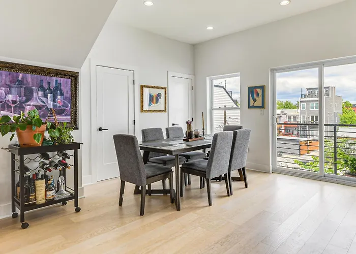 Tijdens hun verblijf in Luxe Nw Dc Condo With Rooftop Deck 7 Mi To Howard Washington van 111 m², kunnen gasten Francis Asbury Statue bezoeken, gelegen op op loopafstand van 20 minuten. Draadloos internet is beschikbaar voor zakelijke of recreatieve behoeften van gasten.